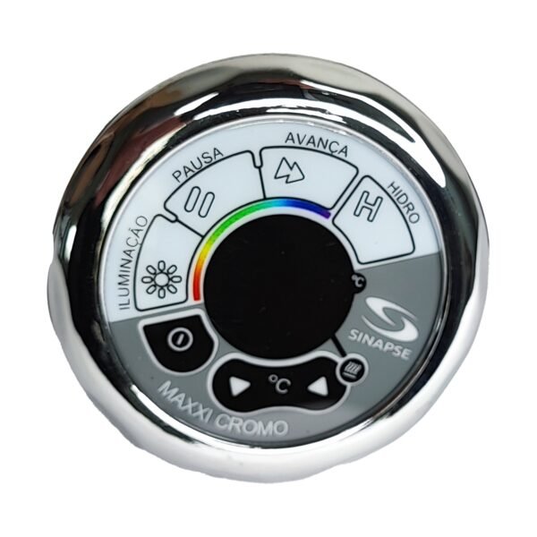 Aquecedor 3 em 1 Sinapse Maxxi Cromo: Aquece + Aciona 1 Bomba + Controla Luzes. Corpo antichamas, duplo sensor de nível e aquecimento rápido sem perder a força dos jatos.