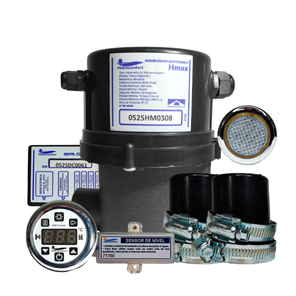 O Hcromo é um aquecedor potente, desenvolvido para aquecimento rápido e acionamento da bomba de circulação, sem perder a vazão dos jatos de hidromassagem de banheiras, além de trabalhar a cromoterapia.