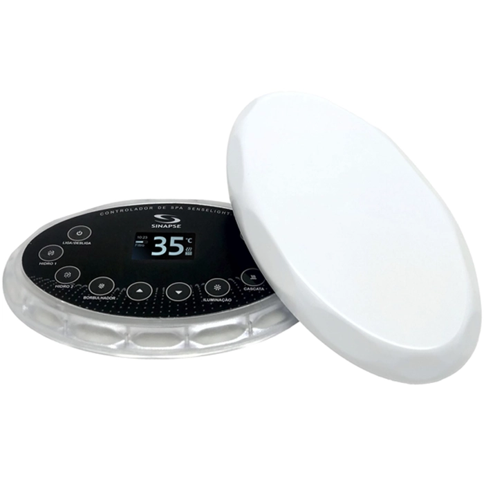 Capa de proteção plástica de reposição para painéis de comando de aquecedores Sinapse. Compatível com modelos Senselight, Max Cromo Duo, Spamax e Slim Light. Protege contra umidade e poeira. ATENÇÃO: Não inclui o painel eletrônico ou quaisquer componentes internos. Dimensões: 27 x 16 x 17 cm.