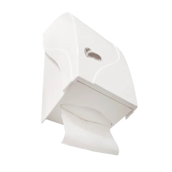 Dispensador manual de papel higiênico ou guardanapo interfolhado, em plastico PS na cor branca. Com visor e chave. A tecnologia antimicrobiana de íons de prata é um importante agente para a redução dos níveis de vírus, bactérias e fungos em superfície.