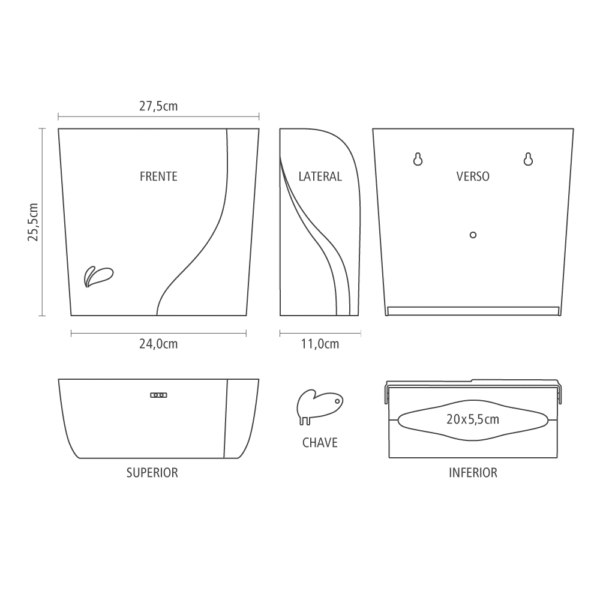 – Dimensões: A: 25,5cm L: 28cm C: 11cm