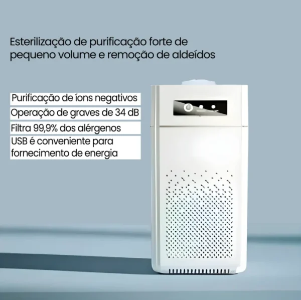 Purificador De Ar Portátil Virus Polen Filtro Hepa E Íons. Este purificador de ar é ideal para melhorar a qualidade do ar em ambientes internos, proporcionando um ambiente mais saudável e limpo.