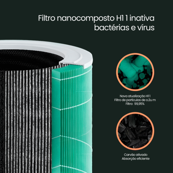 – Filtro: Filtro composto (pré-filtro + filtro H11 HEPA + algodão de carbono ativo)