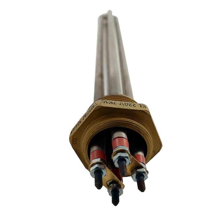Resistência elétrica tubular fabricada em aço inox 304, com rosca de latão 1.1/4″, ideal para aplicação em sistemas de aquecimento como boilers, aquecedores solares e reservatórios térmicos.