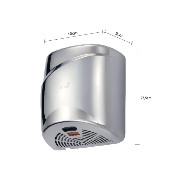 Secador ar para mãos com Acionamento Automático por Sensor de presença infravermelho. Com fluxo de ar quente ou frio, ele iniciará automaticamente toda vez que as mãos estiverem na área de secagem do equipamento. Ideal para banheiros de industrias, para aeroportos, consultórios, shoppings, e comercio em geral.